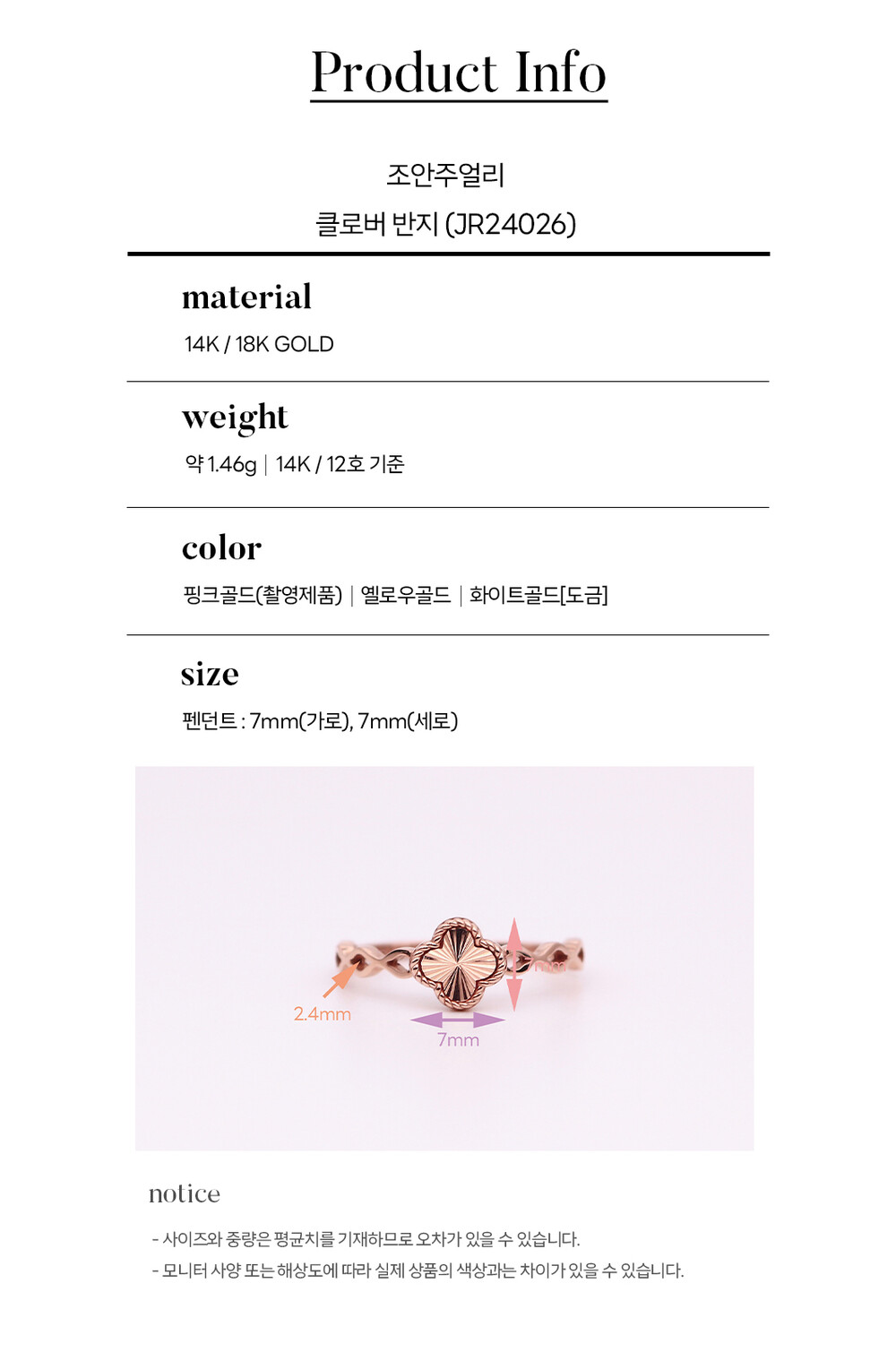 14k(58.5%), 18k(75%) 금 함량을 준수하여 제작되며