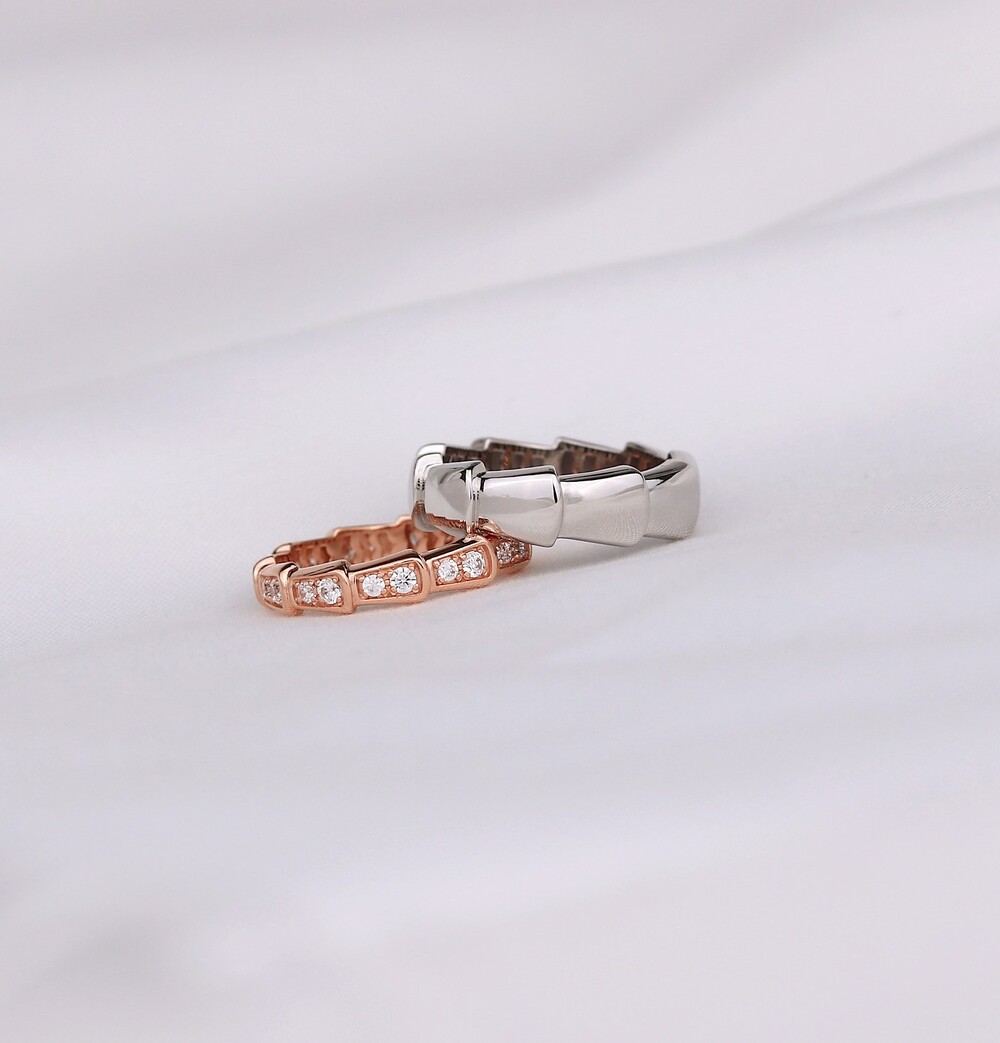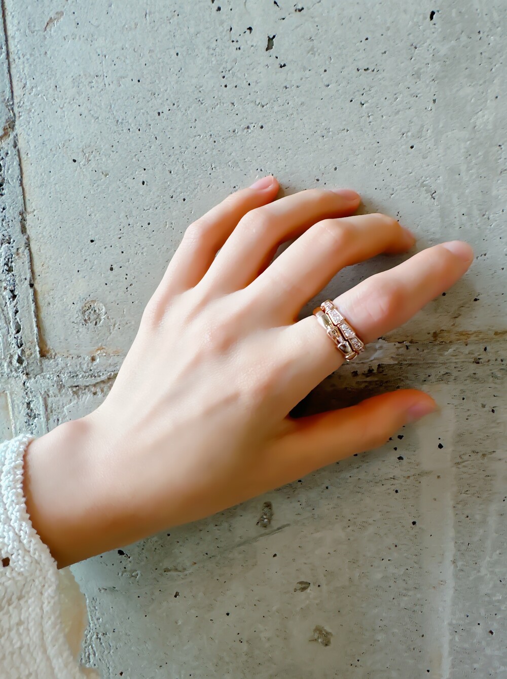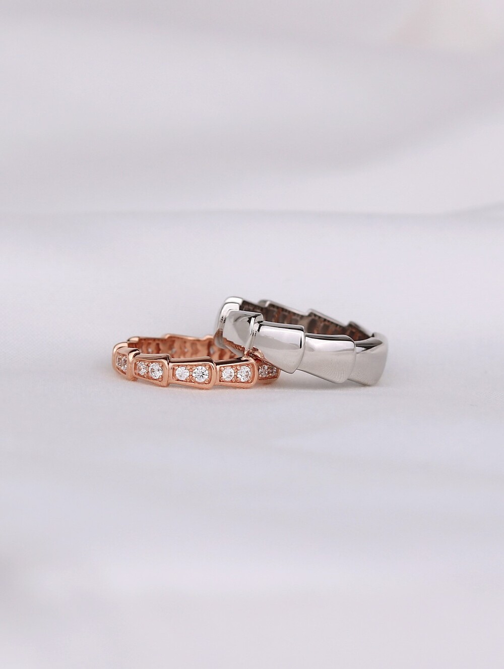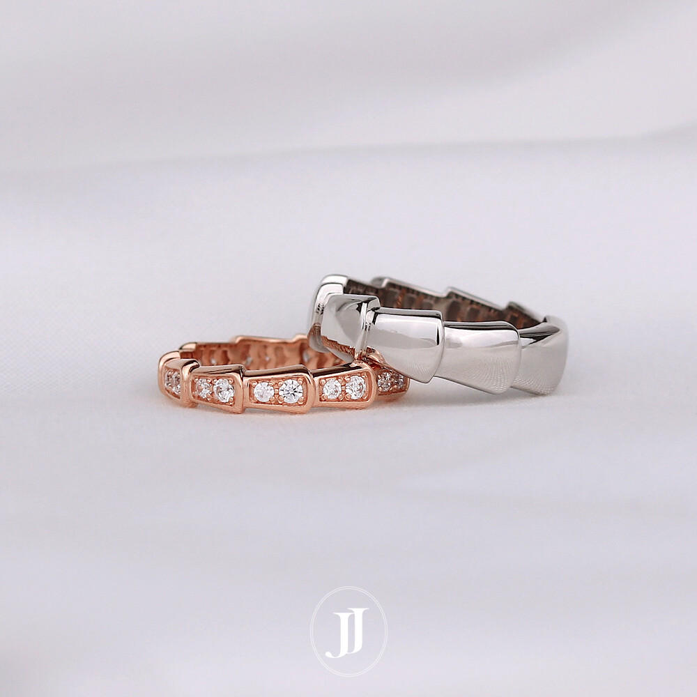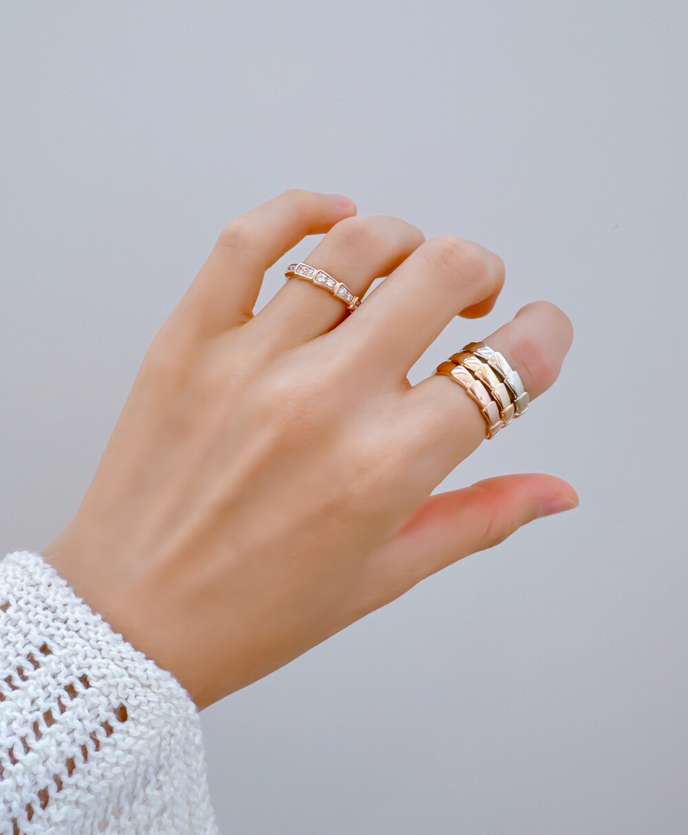 감각적인 패턴의 할로우 스네이크 큐 반지를 보여드려요