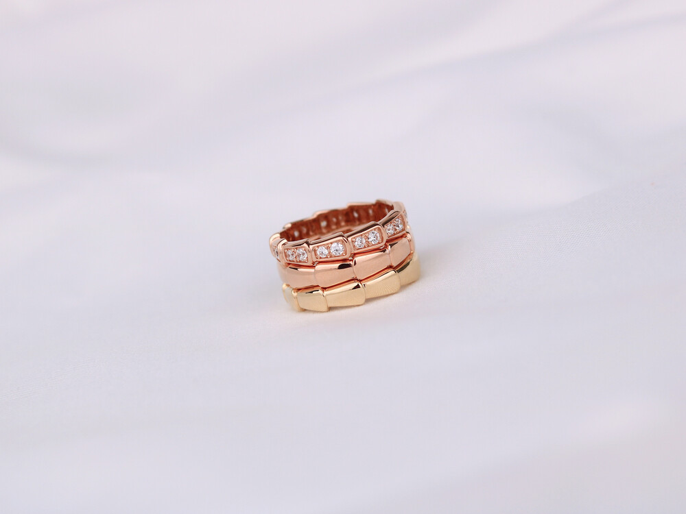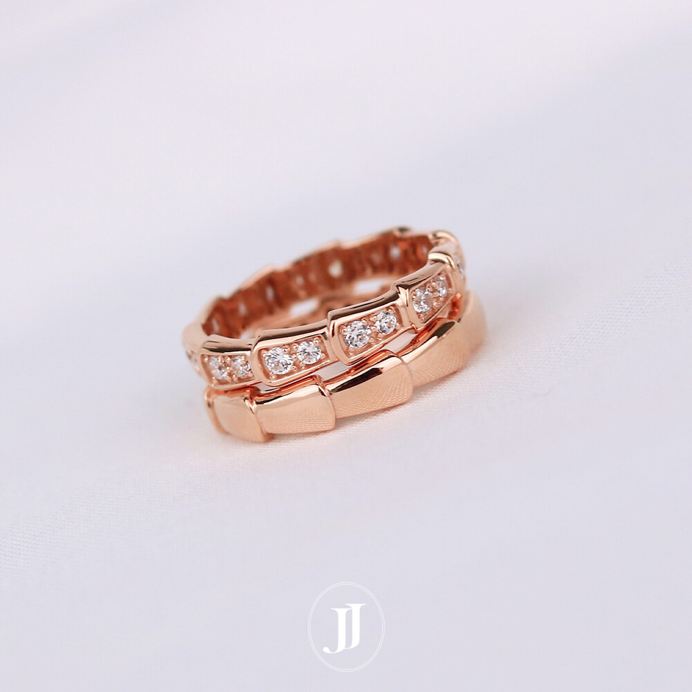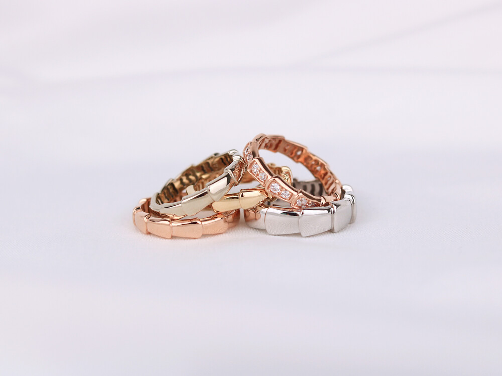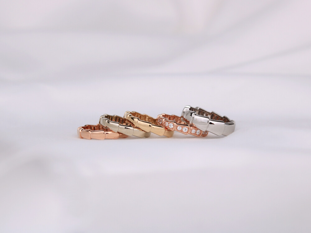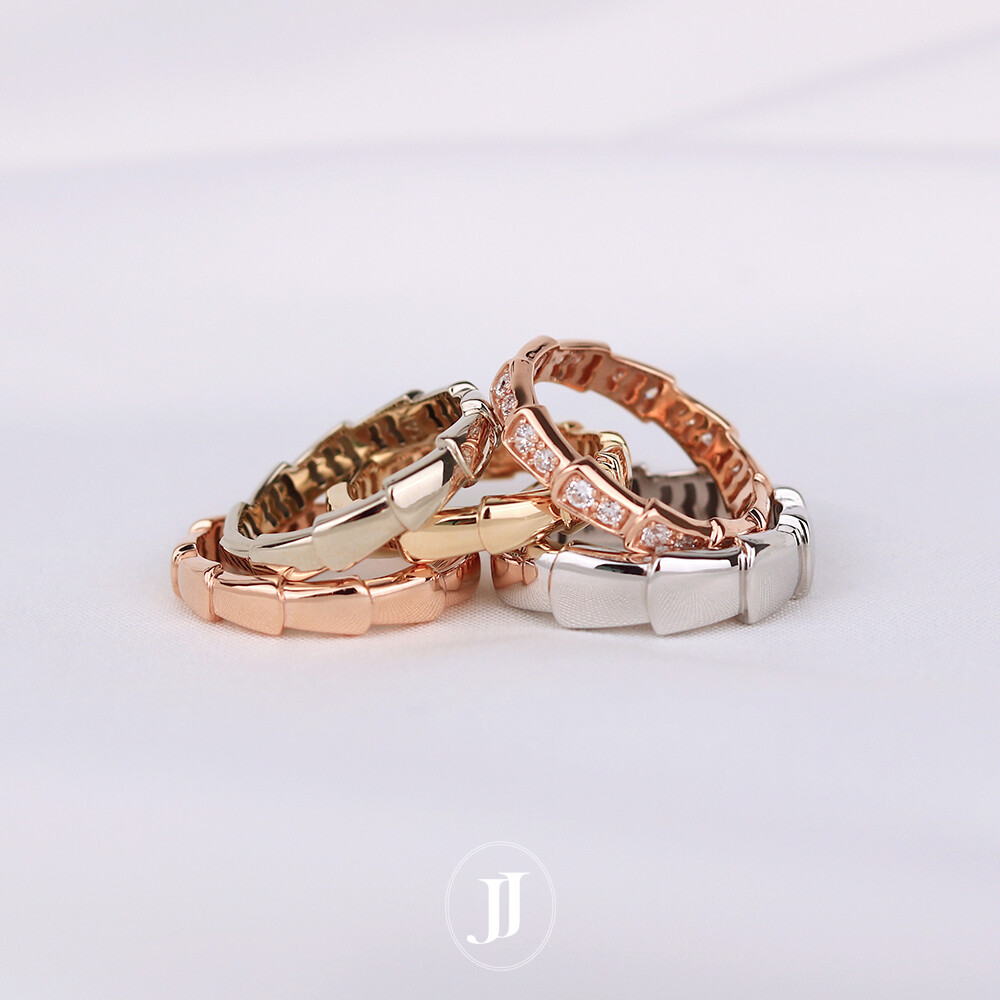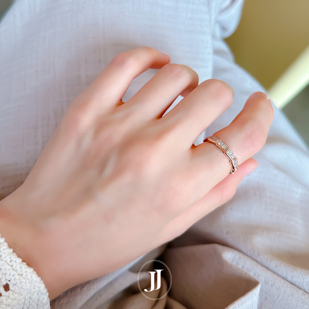감각적인 패턴의 할로우 스네이크 큐 반지를 보여드려요