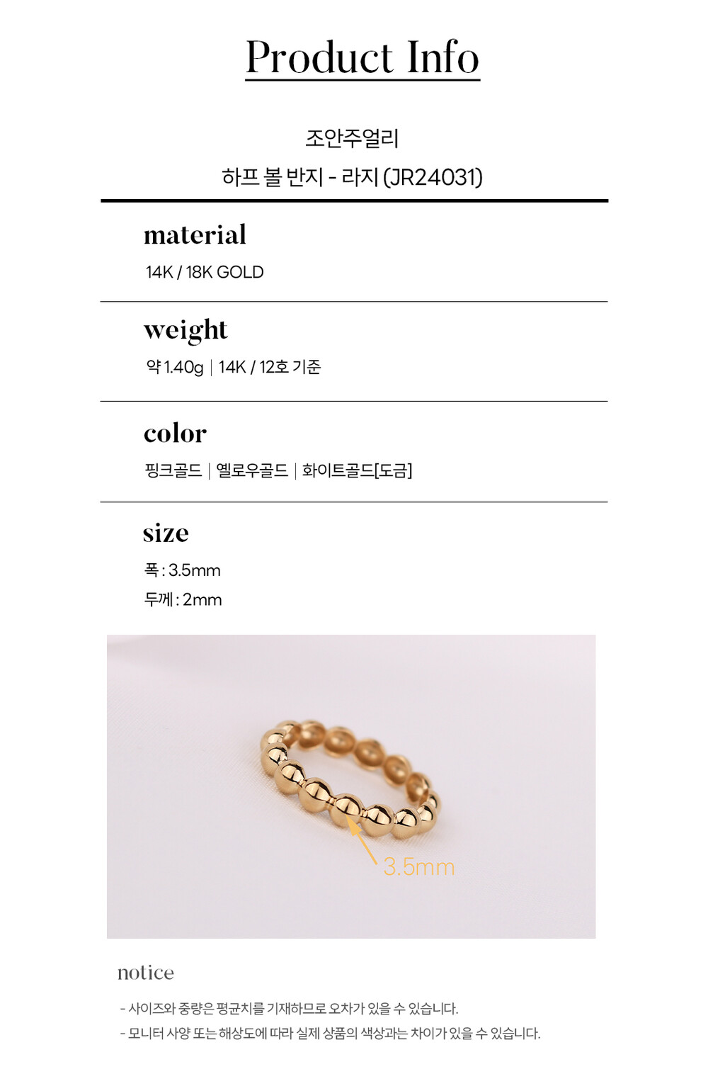 하프 볼 반지 - 라지 14K / 18K