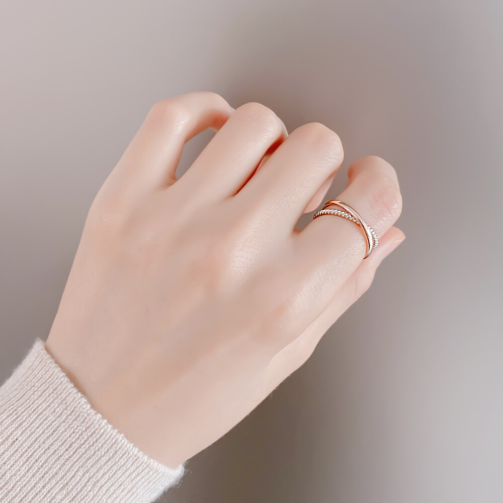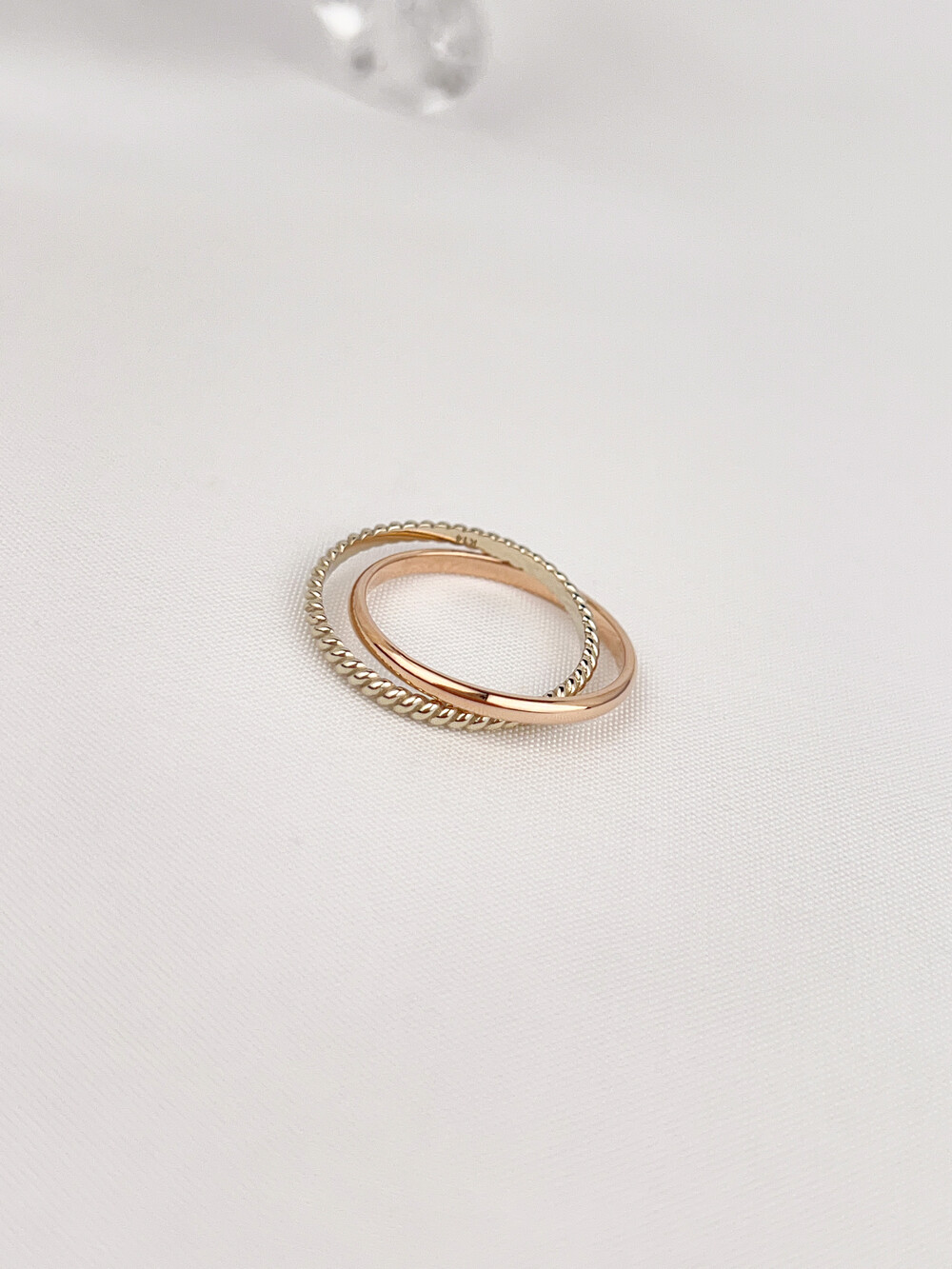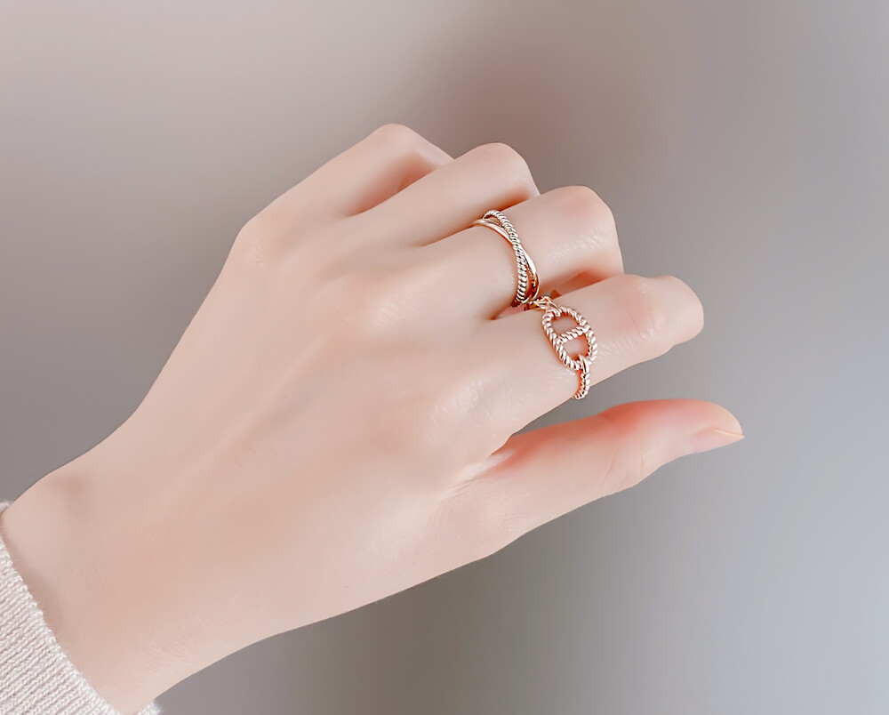 두 개의 링이 교차하며 착용할 수 있는 스타일이기에